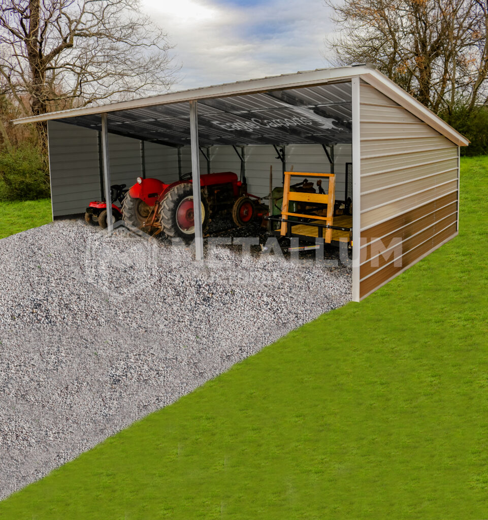 Give your animals, hay, and farm equipment the protection they need with the 15×30×9/6 Metal Loafing Shed. Engineered with a vertical roof design, this sturdy steel structure offers lasting strength and weather resistance for farms and ranches.