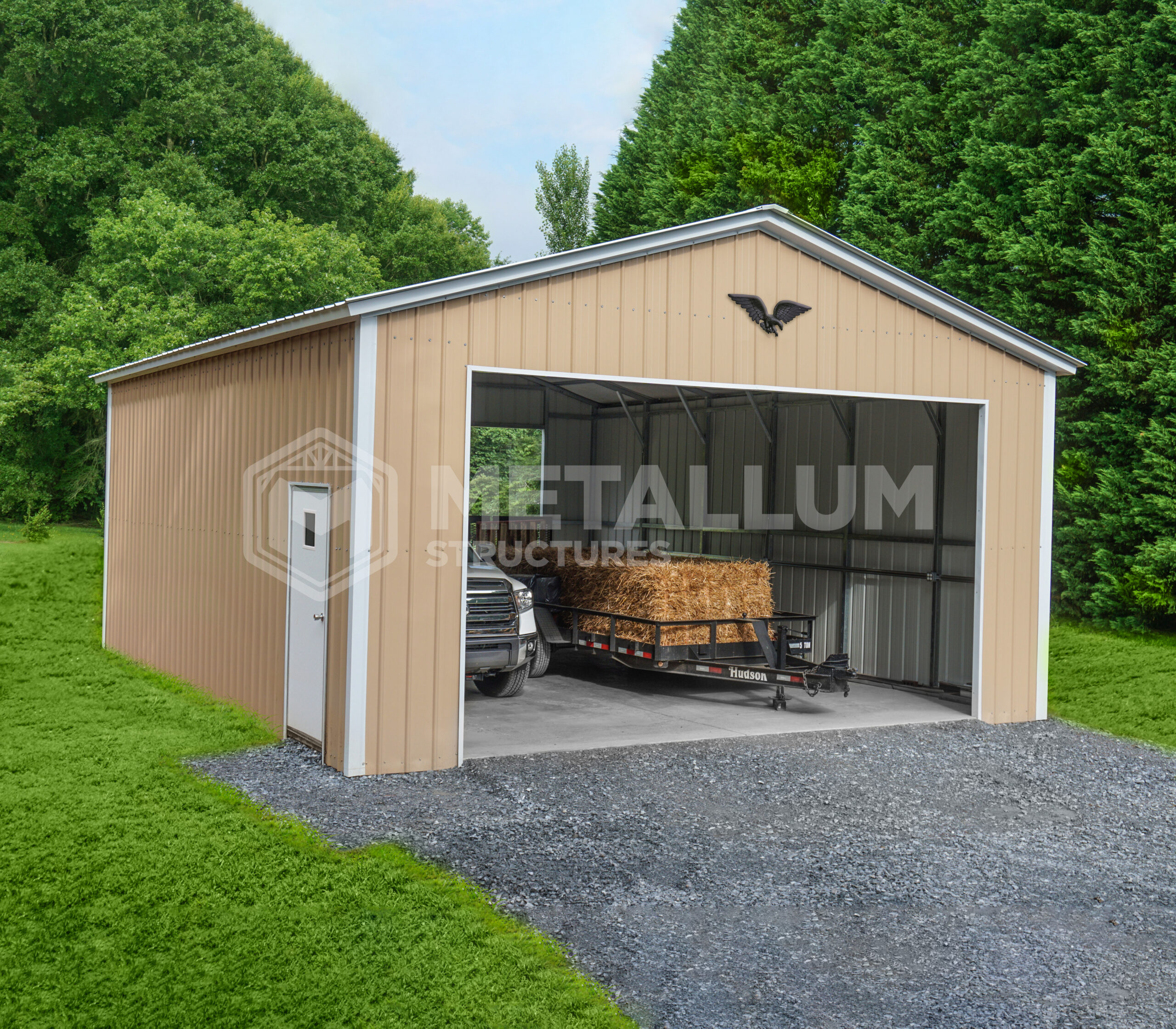 Introducing our 24x30x10 Metal Garage, the perfect solution for homeowners in need of a reliable and durable storage space. This garage features a design, ensuring that water, debris, and snow slide off easily, keeping your vehicles and equipment dry and clean. Measuring 24 feet wide, 30 feet long, and 10 feet high, this garage offers ample storage space for multiple vehicles or equipment. The garage is constructed using high-quality steel, making it sturdy and durable. The 12-gauge steel frame and 29-gauge metal panels are carefully engineered to resist rust and corrosion, ensuring long-lasting protection against harsh weather conditions. The steel construction also makes the garage highly resistant to impact damage, providing reliable protection for your vehicles and equipment. Assembling the garage is easy and straightforward, thanks to the pre-cut and pre-drilled components, and the step-by-step instructions provided. The garage can be installed on any level surface, making it a flexible and versatile storage solution. Customization options are available to suit your specific needs, including windows, walk-in doors, insulation, and more. You can customize the garage to fit your unique preferences, creating the ideal storage space for your vehicles or equipment. Overall, the 24x30x10 Metal Garage is an excellent investment for homeowners in need of a reliable and secure storage solution.